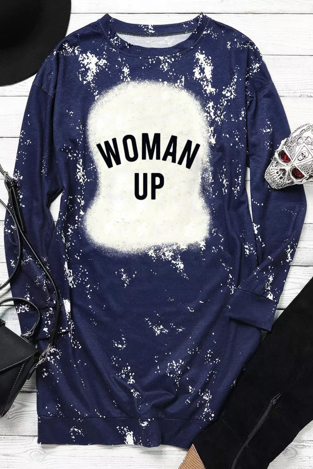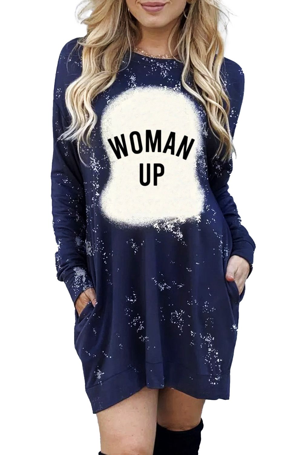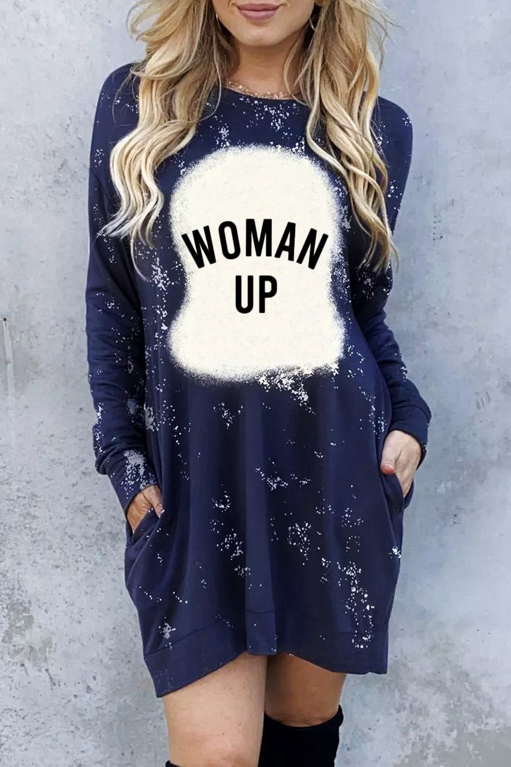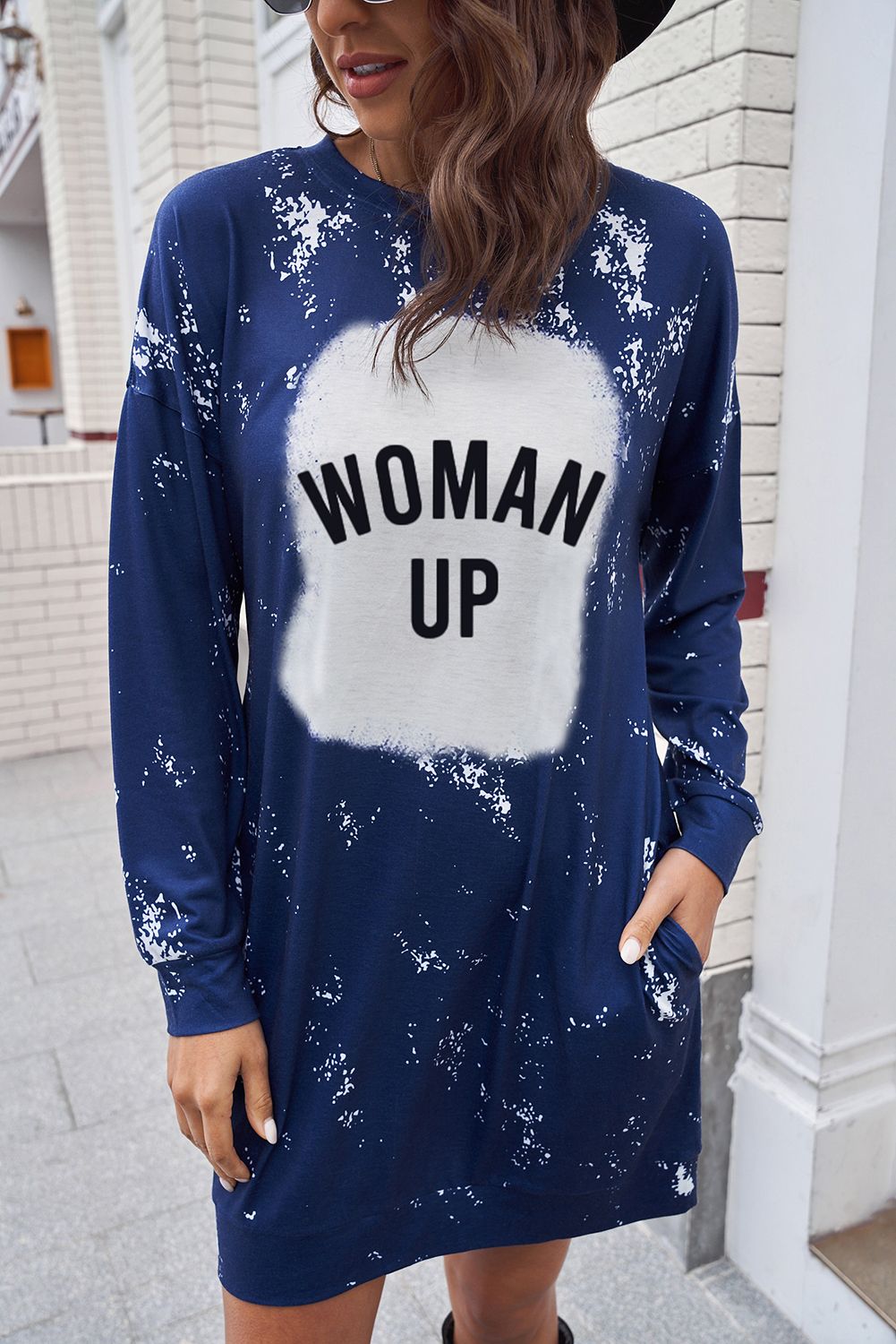 Made in a relaxed fit style, this long sleeve dress can hide flaw spots wellThe thigh-high length cut makes this woman dress sexy to show the long legsRound neck, long sleeve, side pockets and mini length hemline finishedThe letter print against tie-dye on the dress is unique and easy to get noticedGraphic dresses wholesale from dear-lover with a large amount of fashionable styles at amazing prices