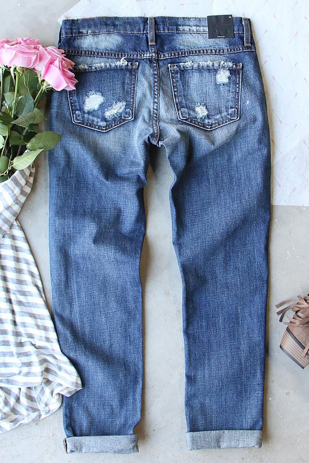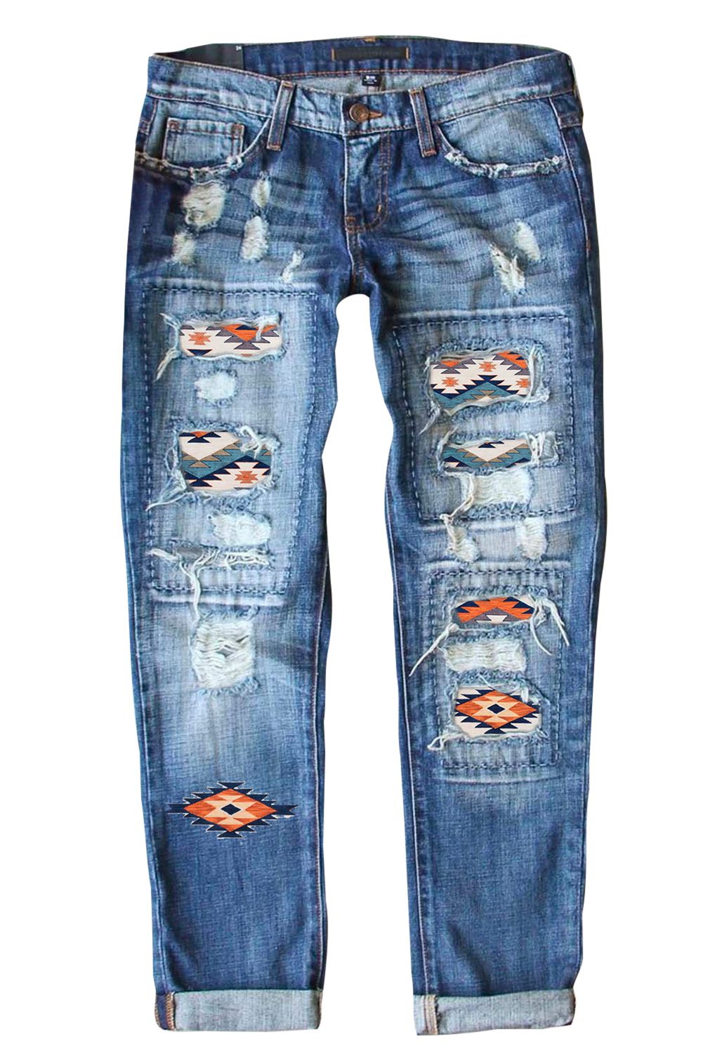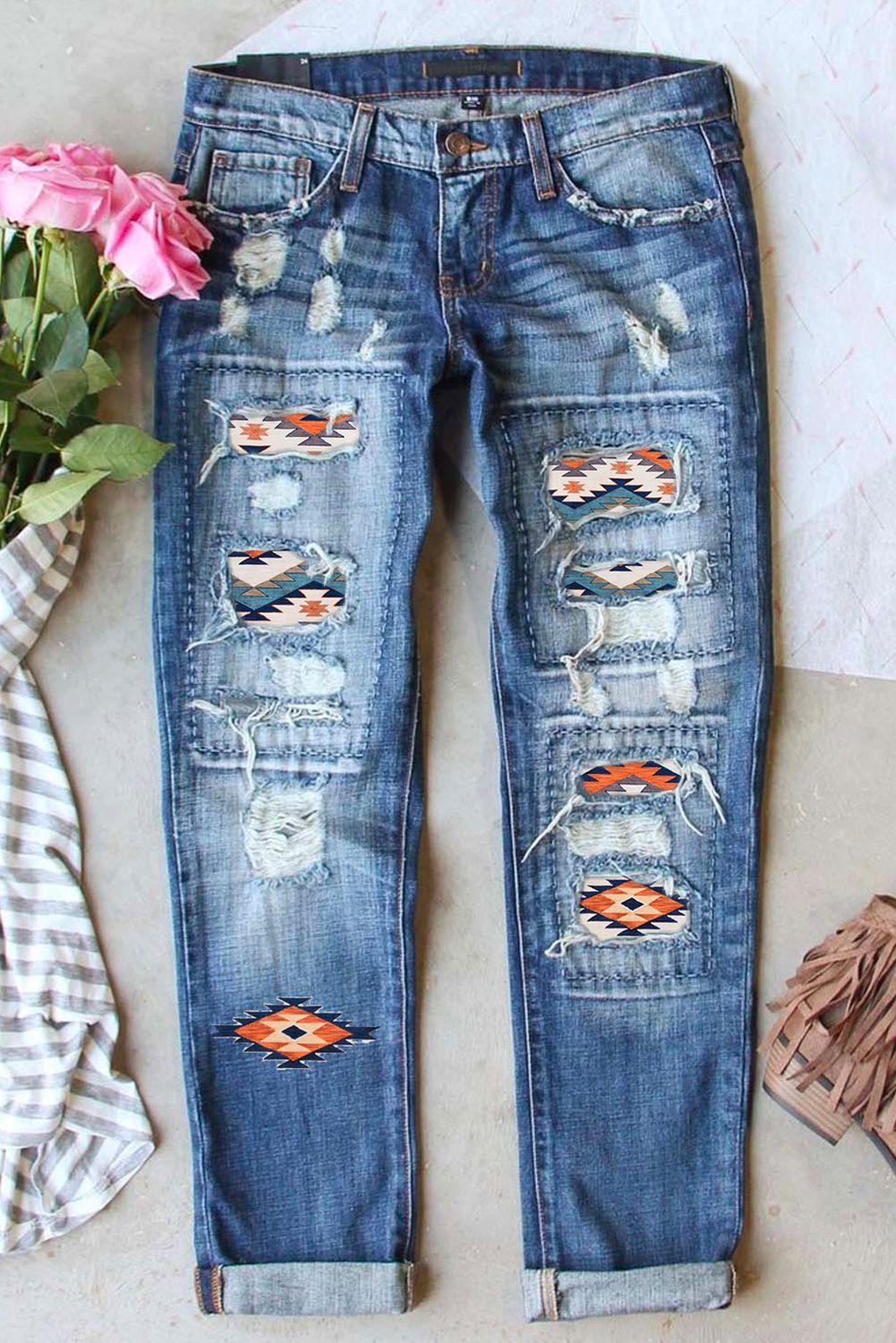Western Aztec Pattern Splicing Distressed Jeans