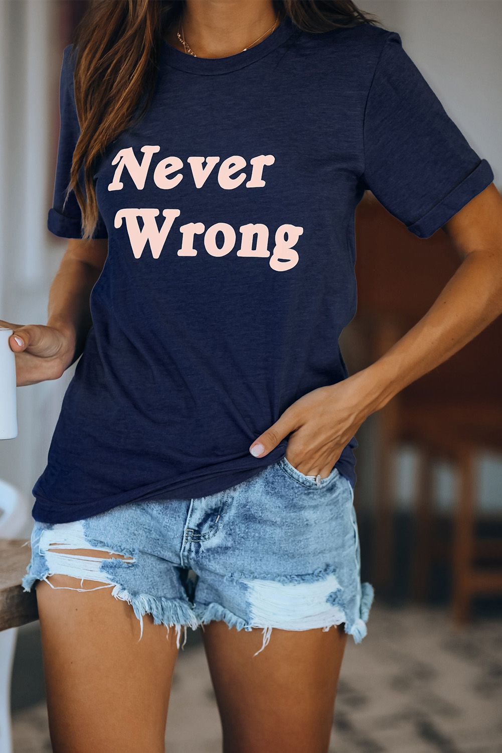 Blue Casual Letter Print Graphic Tee