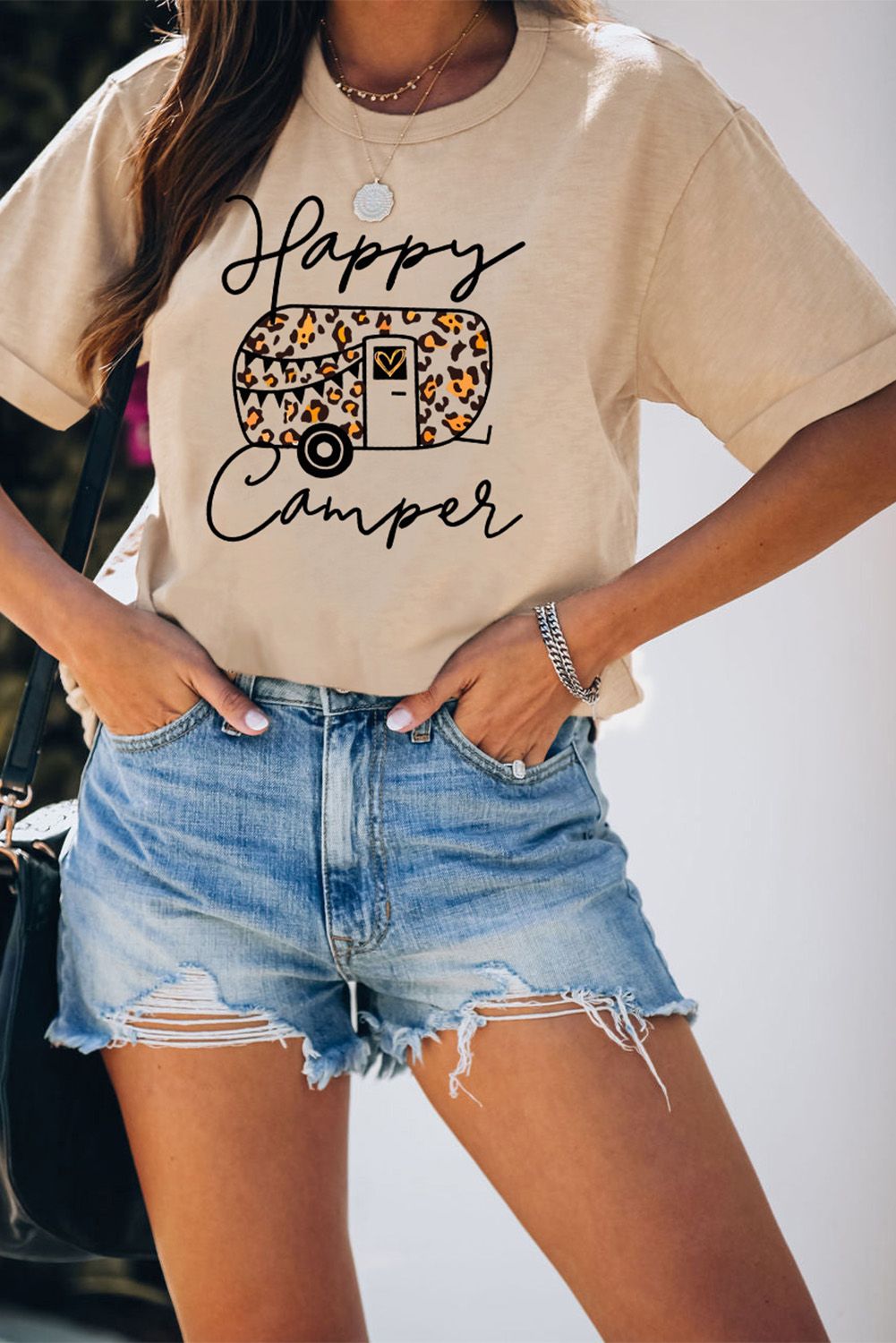 Happy Camper Letter Pattern Print Short Sleeve T-shirt