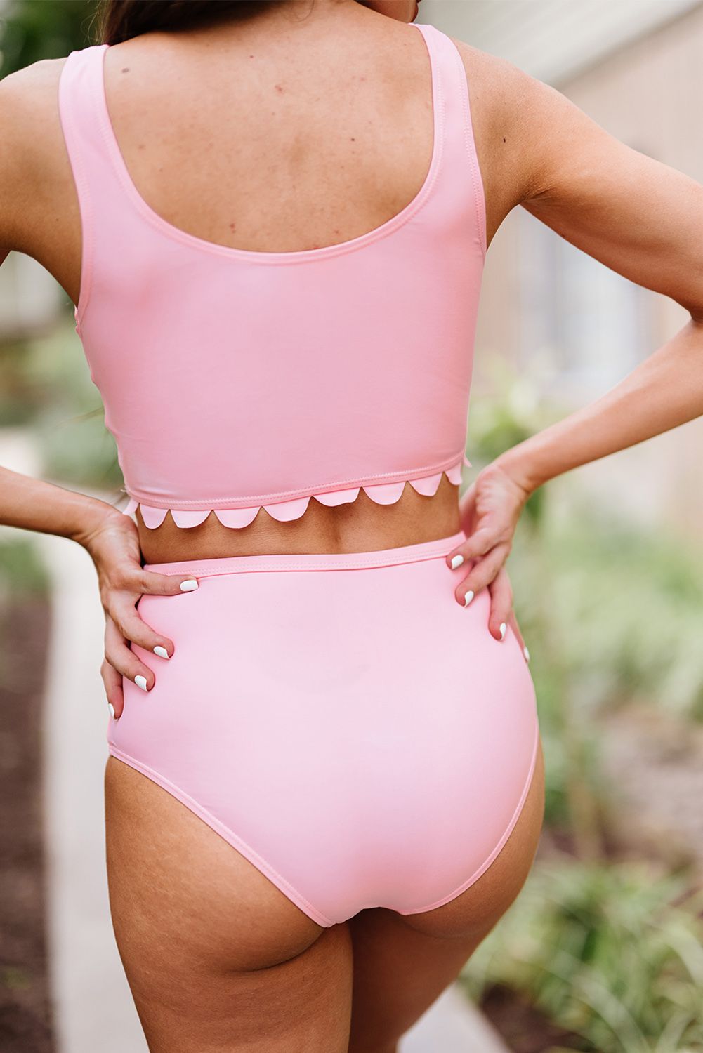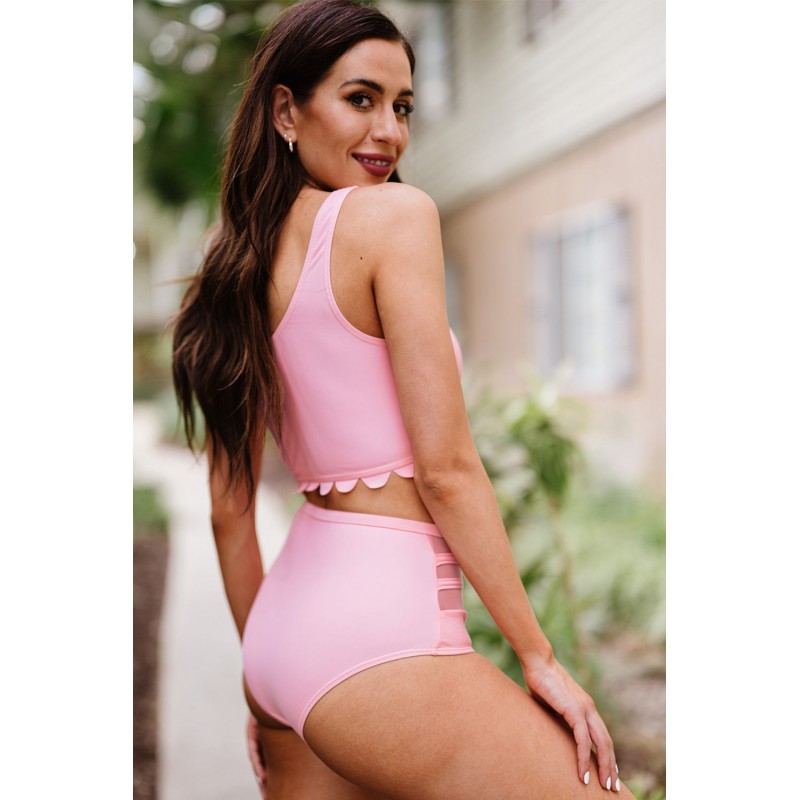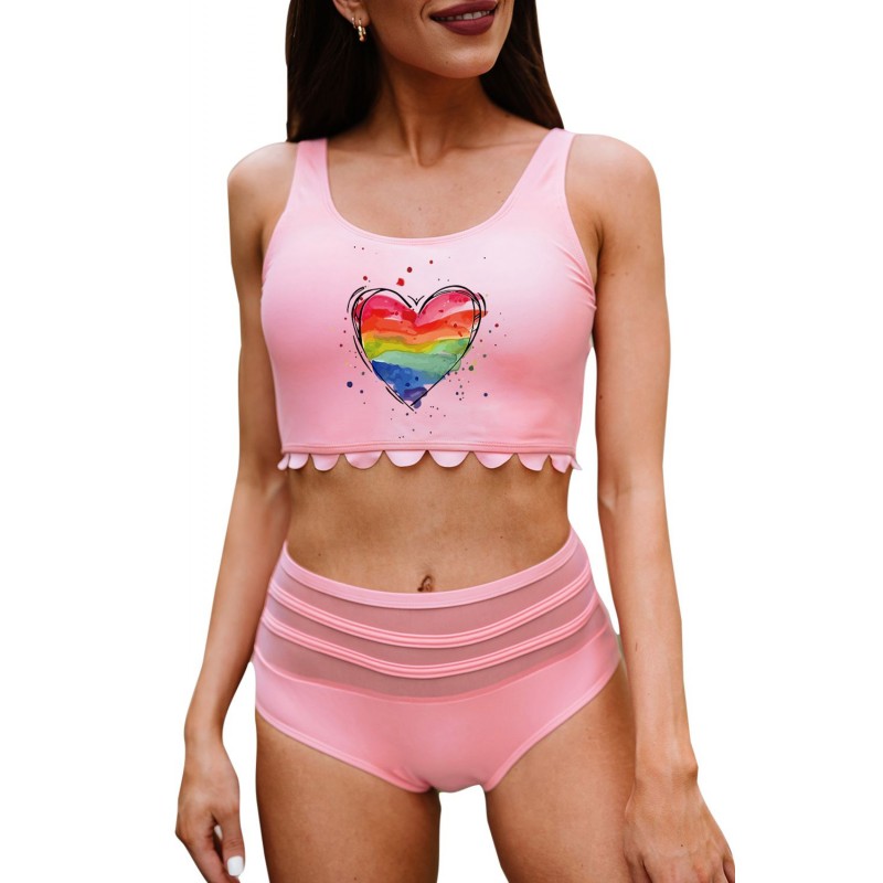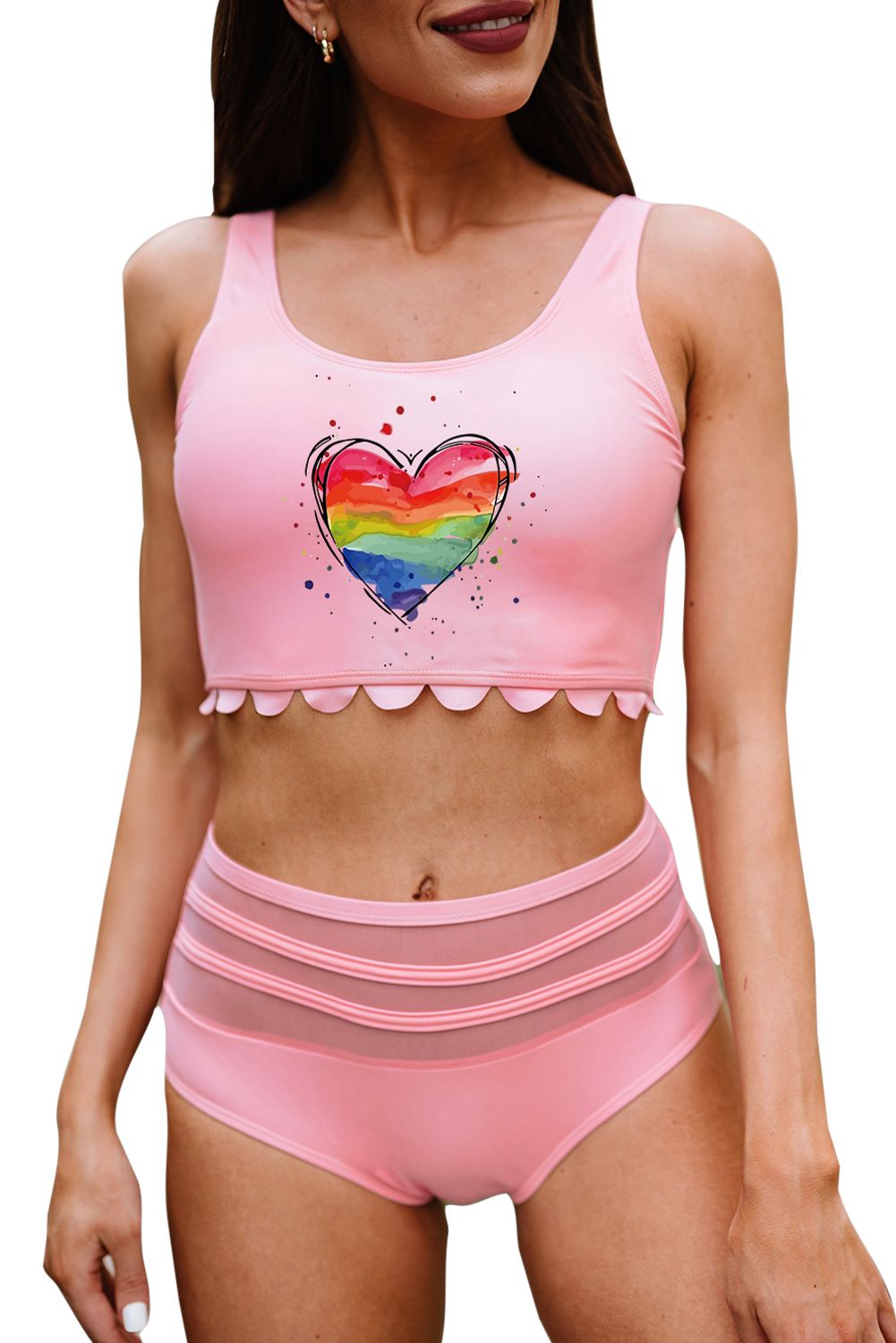 Pink Colorful Heart Shaped Scalloped High Waist Bikini Swimwear